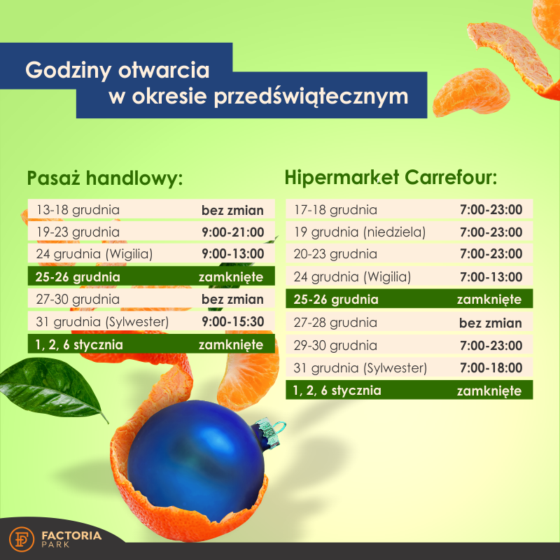 Strona główna / Godziny otwarcia CH Factoria Park w okresie przedświątecznym