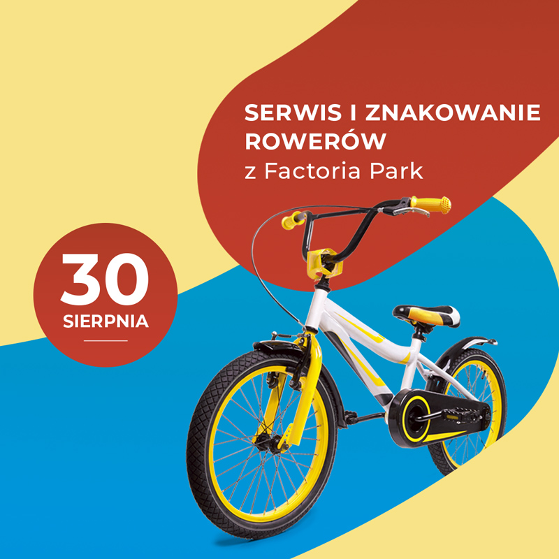 🚴‍♀️ Zabierz rower i przyjdź w sobotę 30 sierpnia przed Factoria Park ▶️ od 12.00 do 14.00 możesz skorzystać z darmowego znakowania.